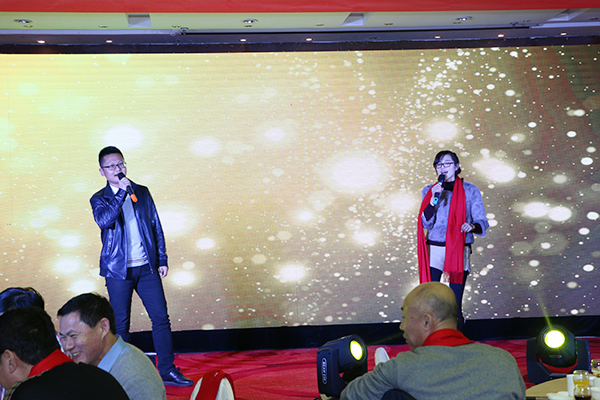晚會以“傳承紅色經(jīng)典 踐行品牌之旅”為主題,分為頒獎典禮和新春聯(lián)歡晚會兩部分。首先進行的是頒獎典禮,典禮由發(fā)展規(guī)劃部部長卞秀晗主持。公司董事長程曉華致辭,程董事長指出,緊張忙碌的2016年已經(jīng)過去,公司在董事會領(lǐng)導(dǎo)下,領(lǐng)導(dǎo)班子的帶領(lǐng)下,在全體員工的努力下,取得了前所未有的銷售成績。公司將在新的一年里實現(xiàn)管理方式轉(zhuǎn)變,包括技術(shù)人員項目制、管理人員競聘上崗制、導(dǎo)入數(shù)據(jù)核算。隨后,舉行了2016年“奮戰(zhàn)四季度 創(chuàng)造新業(yè)績”活動以及2016年度先進集體與個人的頒獎儀式,部分卓越團隊代表、先進個人代表作了表態(tài)發(fā)言。